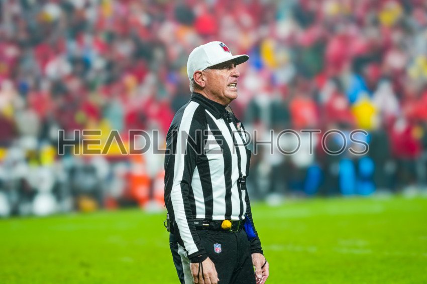 Kansas City, Missouri, USA, November 4, 2024, Referee John Hussey during the Tampa Bay Buccaneers vs Kansas City Chiefs at GEHA Field Arrowhead Stadium. (Photo Credit: Marty Jean-Louis)