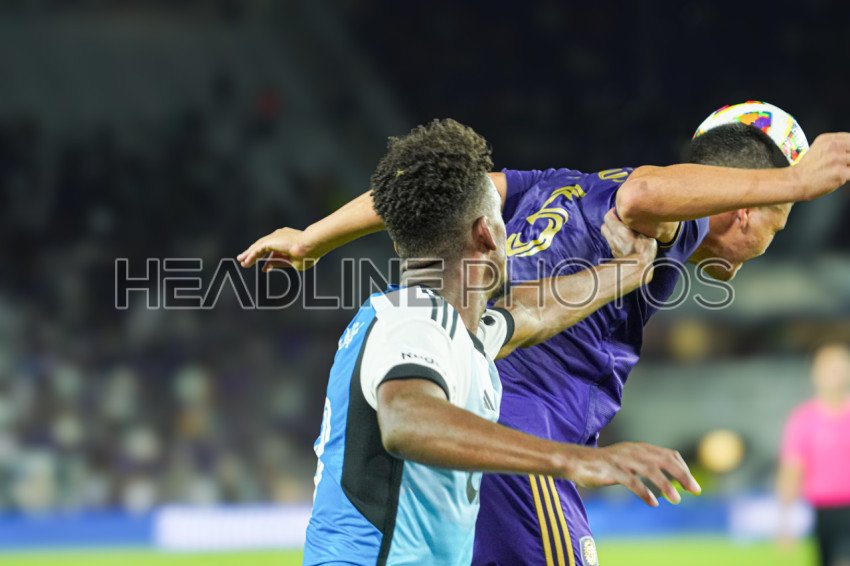 Orlando, Florida, USA, November 9, 2024, Orlando City SC player Cesar Araujo #5 wins the header at Inter&Co Stadium. (Photo Credit: Marty Jean-Louis)