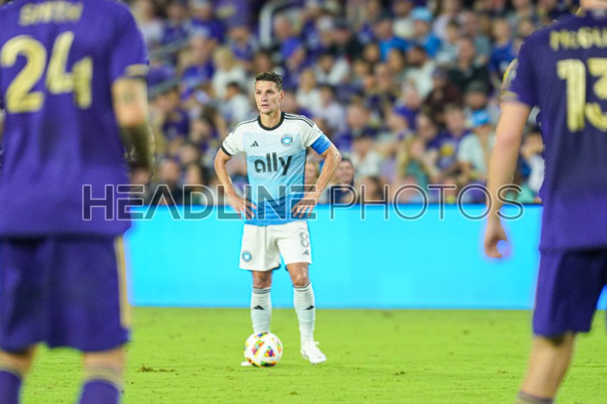Orlando, Florida, USA, November 9, 2024, Charlotte FC player Ashley Westwood #8 readies to make a kick at Inter&Co Stadium. (Photo Credit: Marty Jean-Louis)