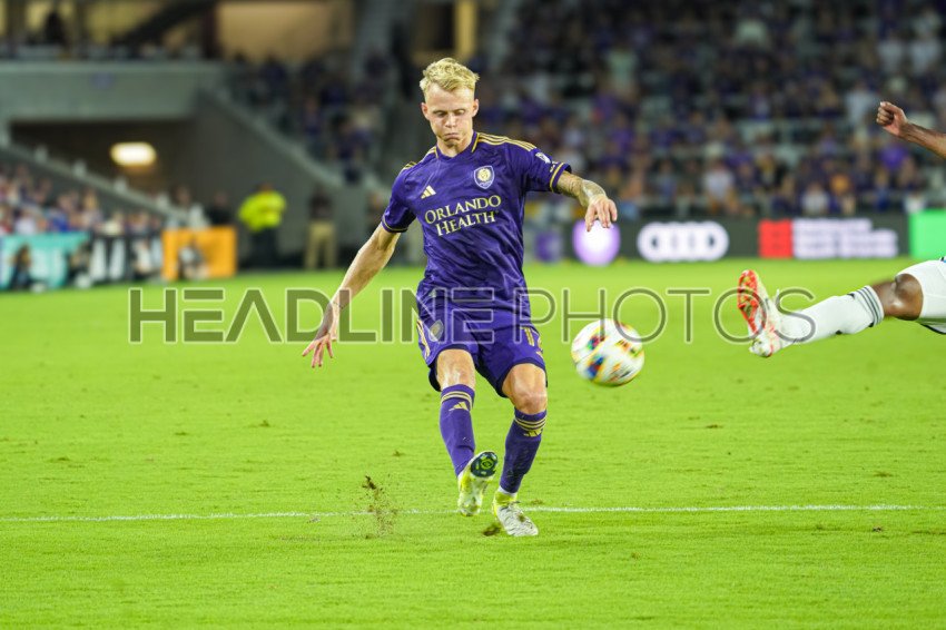 Orlando, Florida, USA, November 9, 2024, Orlando City SC defender Dagur Thorhallsson #17 attempt to score at Inter&Co Stadium. (Photo Credit: Marty Jean-Louis)