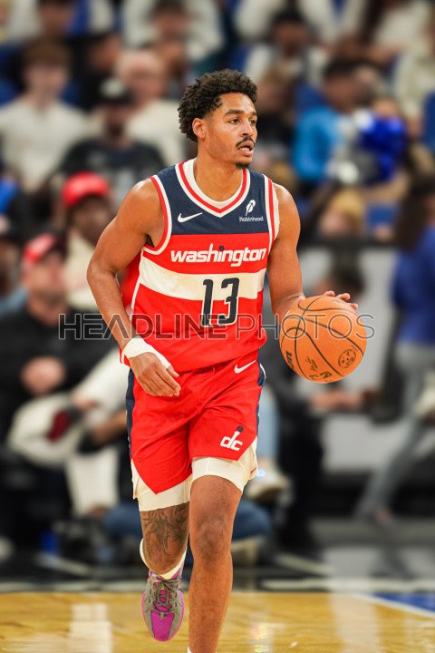 Orlando, Florida, USA, November 10, 2024, Washington guard Jordan Poole #13 runs forward at the Kia Center. (Photo Credit: Marty Jean-Louis)