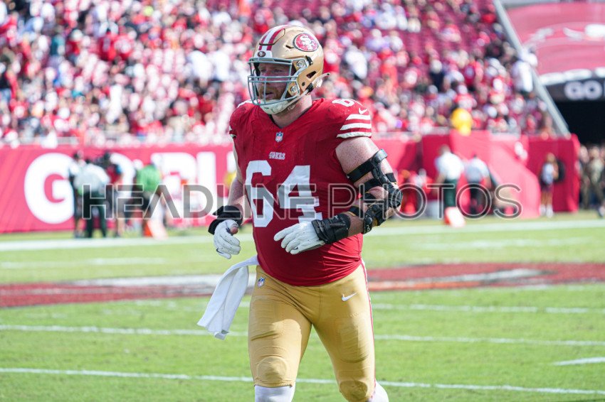 Tampa Bay, Florida, USA, November 10, 2024, San Francisco 49ers player Jake Brendel #64 at Raymond James Stadium. (Photo Credit: Marty Jean-Louis)
