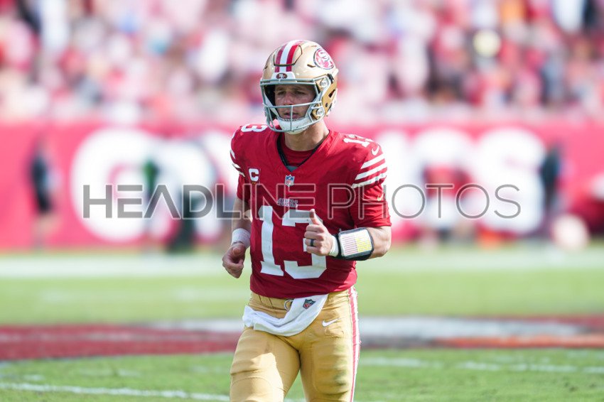 Tampa Bay, Florida, USA, November 10, 2024, San Francisco 49ers quarterback Brock Purdy #13 at Raymond James Stadium. (Photo Credit: Marty Jean-Louis)