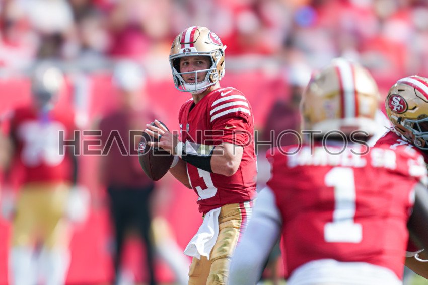 Tampa Bay, Florida, USA, November 10, 2024, San Francisco 49ers quarterback Brock Purdy #13 makes a pass at Raymond James Stadium. (Photo Credit: Marty Jean-Louis)