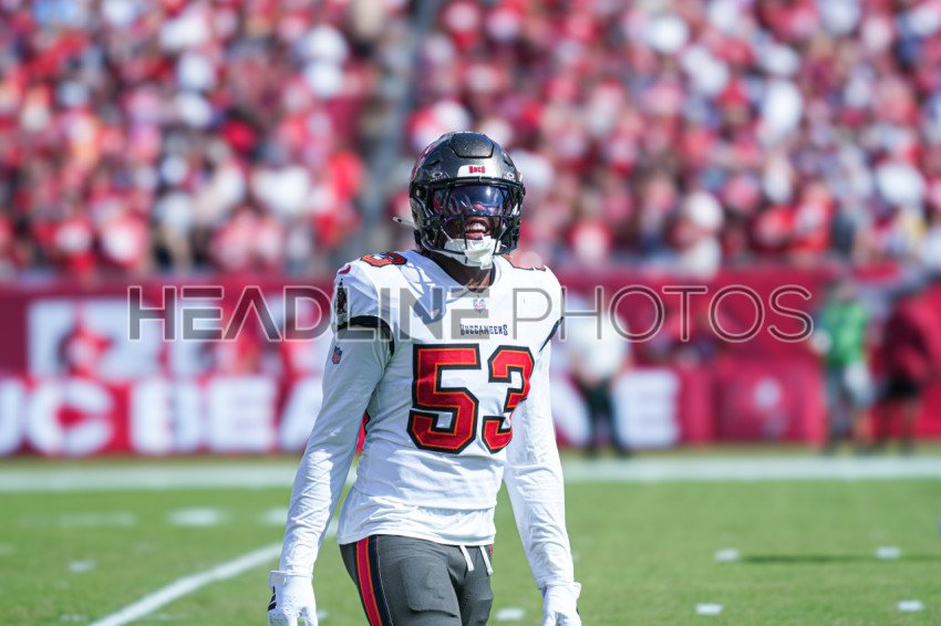 Tampa Bay, Florida, USA, November 10, 2024, Tampa Bay Buccaneers player Vi Jones #53 at Raymond James Stadium. (Photo Credit: Marty Jean-Louis)