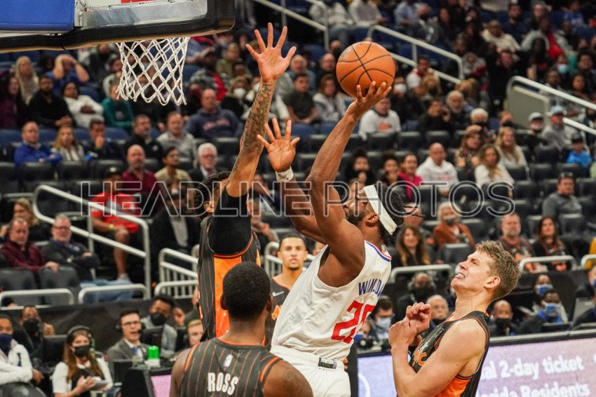 Orlando, Florida, USA, January 26, 2022, Los Angeles Clippers Power Forward Justise Winslow #20 attempt to make a basket at the Amway Center. (Photo Credit: Marty Jean-Louis)