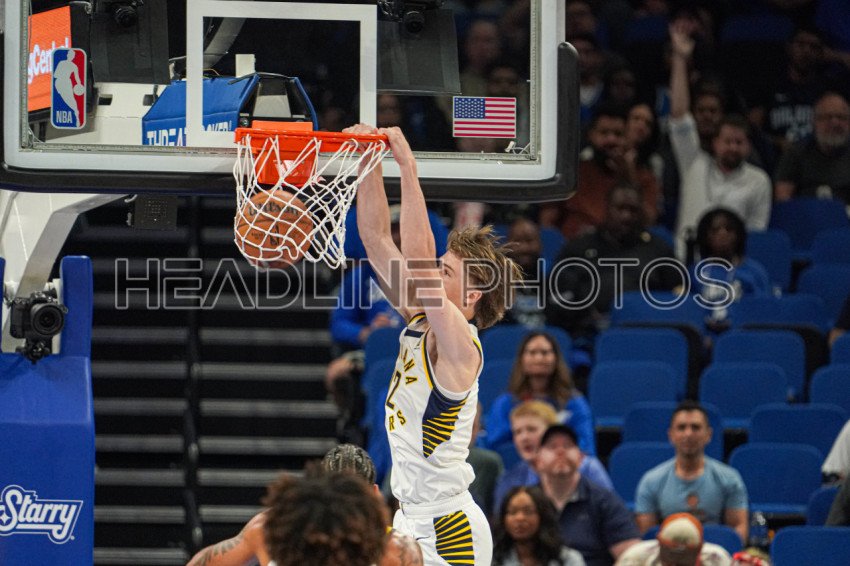 Orlando, Florida, USA, November 12, 2024, Indiana Pacers guard Johnny Furphy #12 makes a dunk at the Kia Center. (Photo Credit: Marty Jean-Louis)