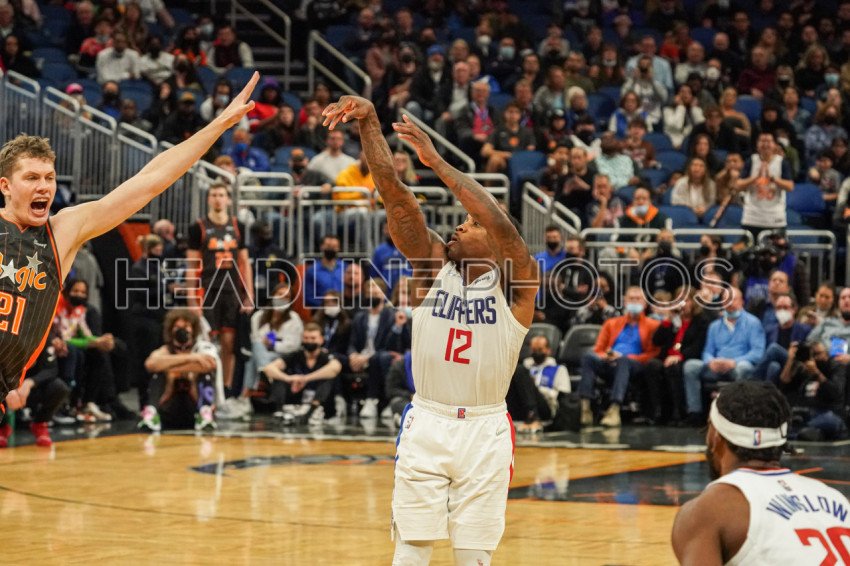 Orlando, Florida, USA, January 26, 2022, Los Angeles Clippers Shooting Guard Eric Bledsoe #12 Attempt to make a shot during the second half at the Amway Center. (Photo Credit: Marty Jean-Louis)