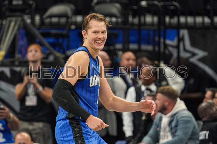 Orlando, Florida, USA, November 15, 2024, Orlando Magic center Moritz Wagner #21 smiles after making a three at the Kia Center. (Photo Credit: Marty Jean-Louis)