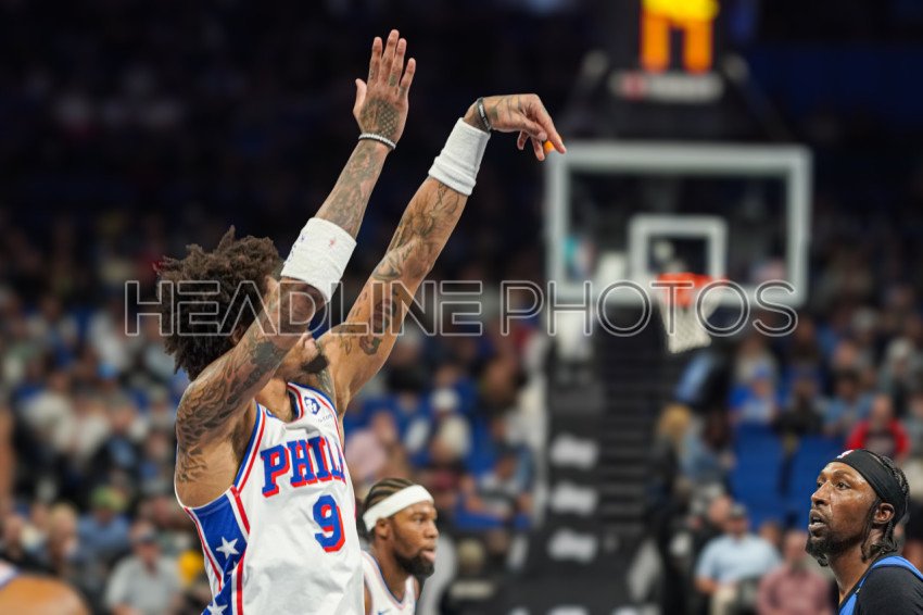 Orlando, Florida, USA, November 15, 2024, Philadelphia 76ers Kelly Oubre Jr #9 shoots a three in the first half at the Kia Center. (Photo Credit: Marty Jean-Louis)