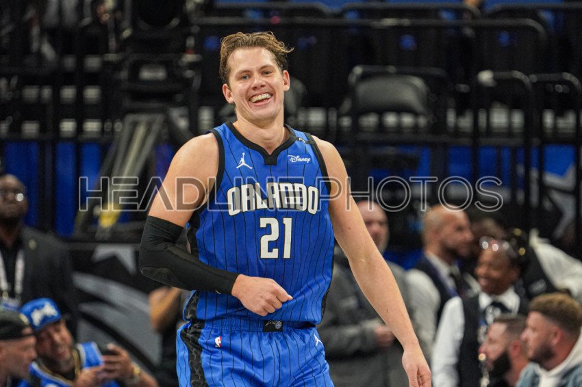 Orlando, Florida, USA, November 15, 2024, Orlando Magic center Moritz Wagner #21 smiles after making a three at the Kia Center. (Photo Credit: Marty Jean-Louis)