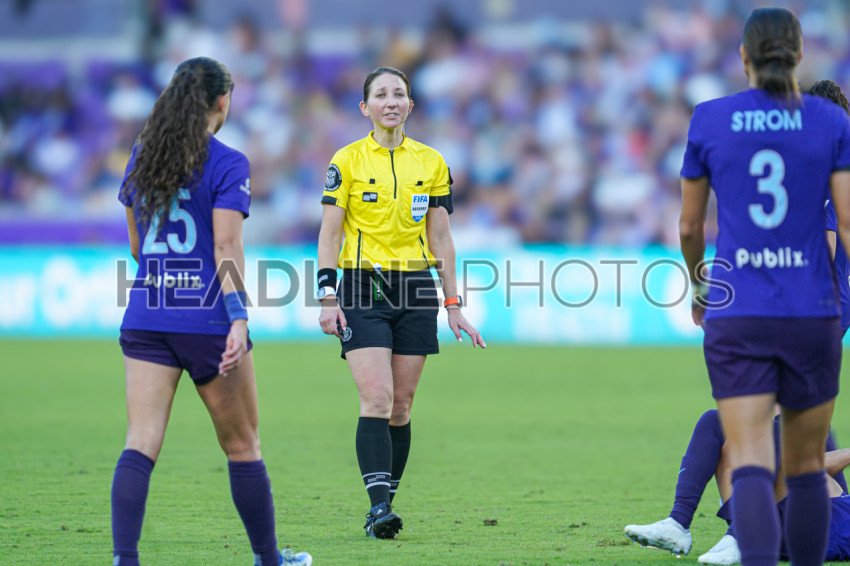 Orlando, Florida, USA, November 17, 2024, Referee Danielle Chesky during the Kansas City Current vs Orlando pride match at Inter&Co Stadium. (Photo Credit: Marty Jean-Louis)