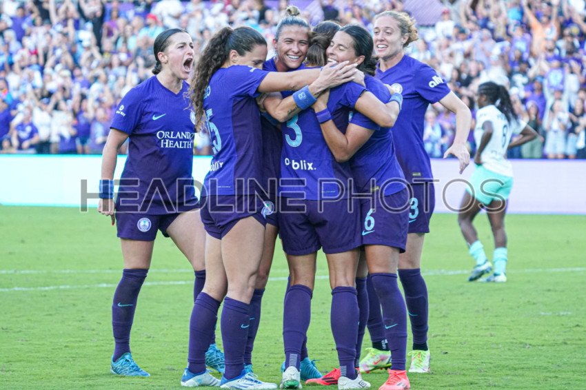 Orlando, Florida, USA, November 17, 2024, Orlando pride players celebrate winning the match at Inter&Co Stadium. (Photo Credit: Marty Jean-Louis)