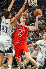 Orlando, Florida, USA, November 27, 2024, Chicago Bulls player Josh Giddey #3 attempt to score at the Kia Center. (Photo Credit: Marty Jean-Louis)