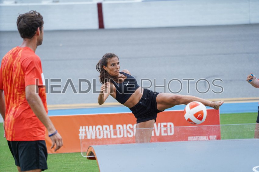 Daytona, Florida, USA, July 2, 2022, People playing Teqball during the SoccerFest at Daytona Speedway. (Photo Credit: Marty Jean-Louis)