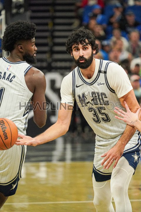 Orlando, Florida, USA, November 27, 2024, Orlando Magic center Goga Bitadze #35 makes a pass at the Kia Center. (Photo Credit: Marty Jean-Louis)