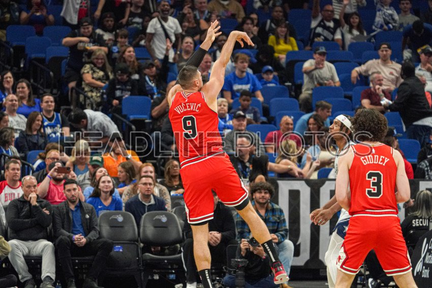 Orlando, Florida, USA, November 27, 2024, Chicago Bulls center Nikola Vucevic #9 takes a shot at the Kia Center. (Photo Credit: Marty Jean-Louis)