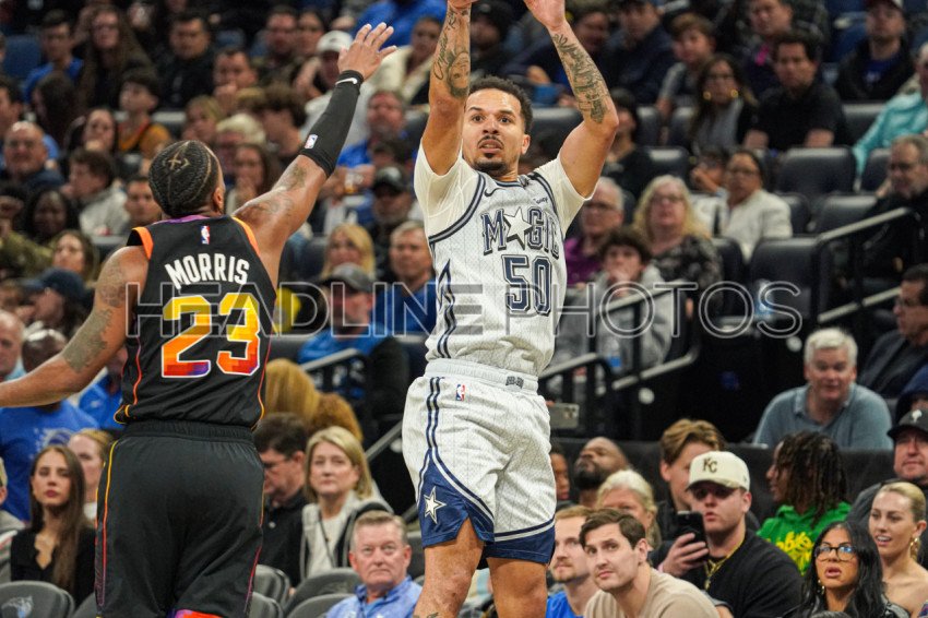 Orlando, Florida, USA, December 8, 2024, Orlando Magic guard Cole Anthony #50 shoots a three at the Kia Center. (Photo Credit: Marty Jean-Louis)