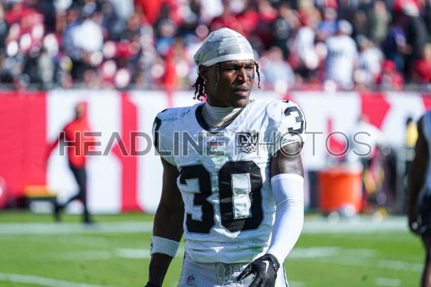 Tampa Bay, Florida, USA, December 8, 2024, Las Vegas Raiders player Darnay Holmes #30 at Raymond James Stadium. (Photo Credit: Marty Jean-Louis)