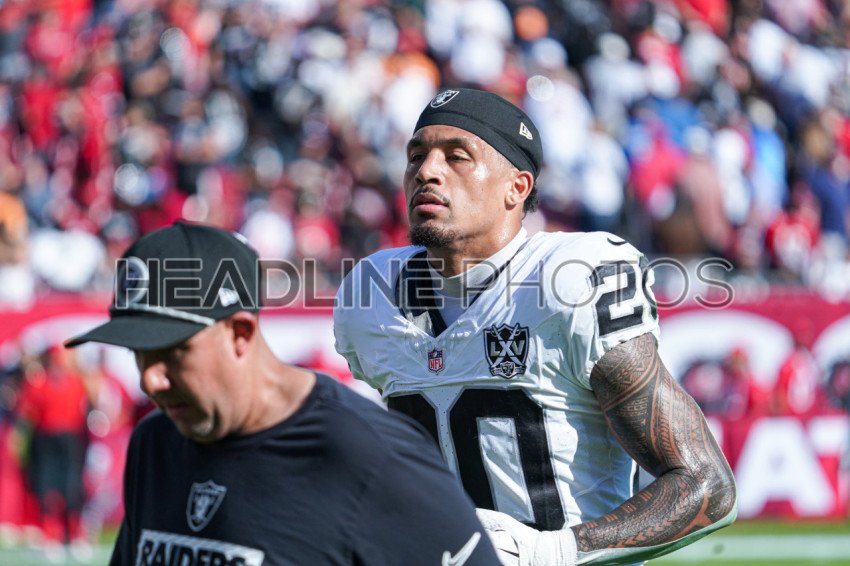 Tampa Bay, Florida, USA, December 8, 2024, Las Vegas Raiders player Isaiah Pola-Mao #20 at Raymond James Stadium. (Photo Credit: Marty Jean-Louis)