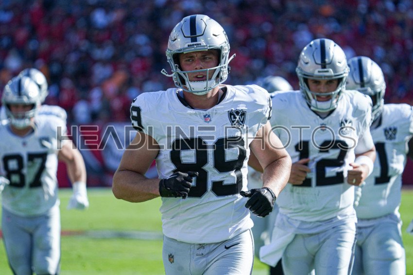 Tampa Bay, Florida, USA, December 8, 2024, Las Vegas Raiders player Brock Bowers #89 at Raymond James Stadium. (Photo Credit: Marty Jean-Louis)