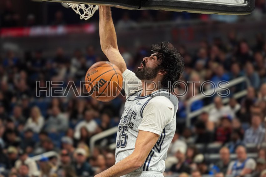 Orlando, Florida, USA, December 15, 2024, Orlando Magic center Goga Bitadze #35 makes a dunk at the Kia Center. (Photo Credit: Marty Jean-Louis)