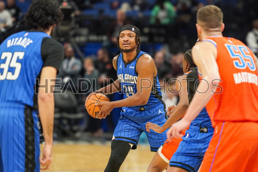 Orlando, Florida, USA, December 19, 2024, Orlando Magic forward Wendell Carter jr #34 guards the ball in the first at the Kia Center. (Photo Credit: Marty Jean-Louis)