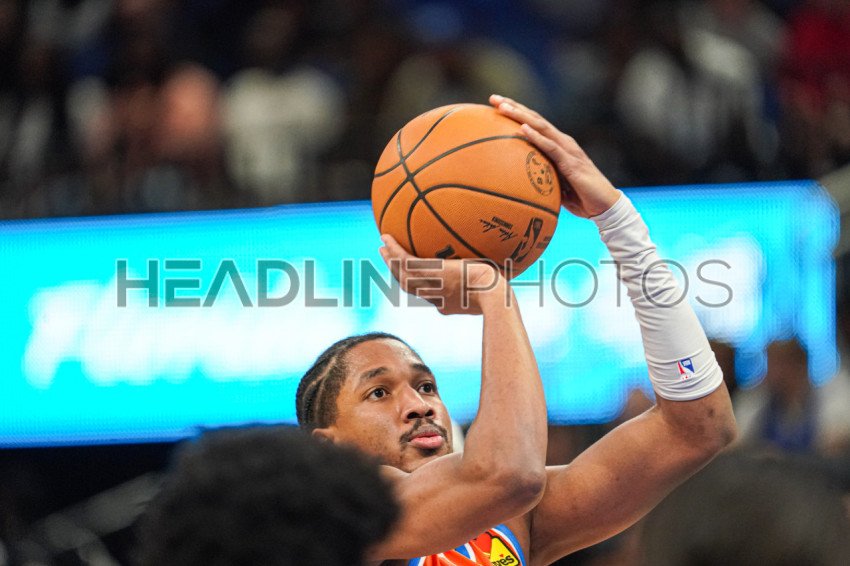 Orlando, Florida, USA, December 19, 2024, Oklahoma Thunder guard Aaron Wiggins #21 shoots a free throw at the Kia Center. (Photo Credit: Marty Jean-Louis)