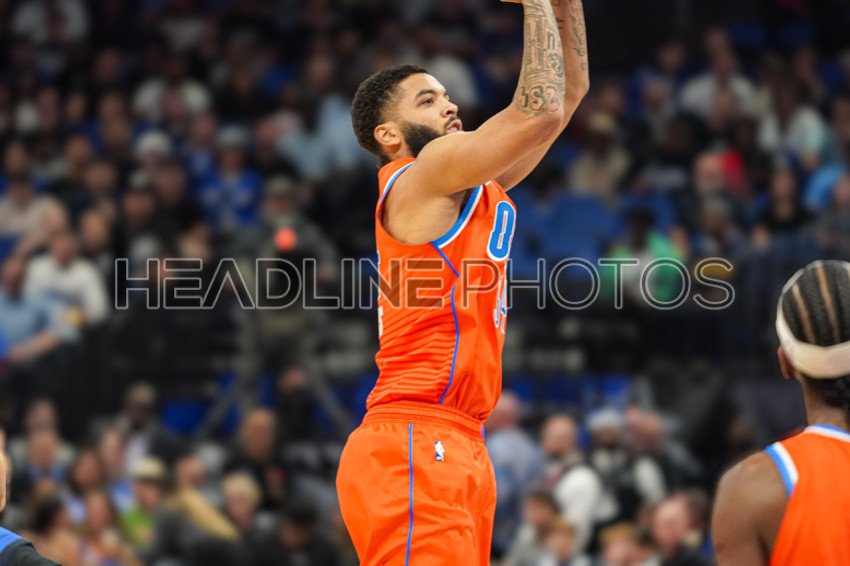 Orlando, Florida, USA, December 19, 2024, Oklahoma Thunder guard Kenrich Williams #34 shoots a three at the Kia Center. (Photo Credit: Marty Jean-Louis)