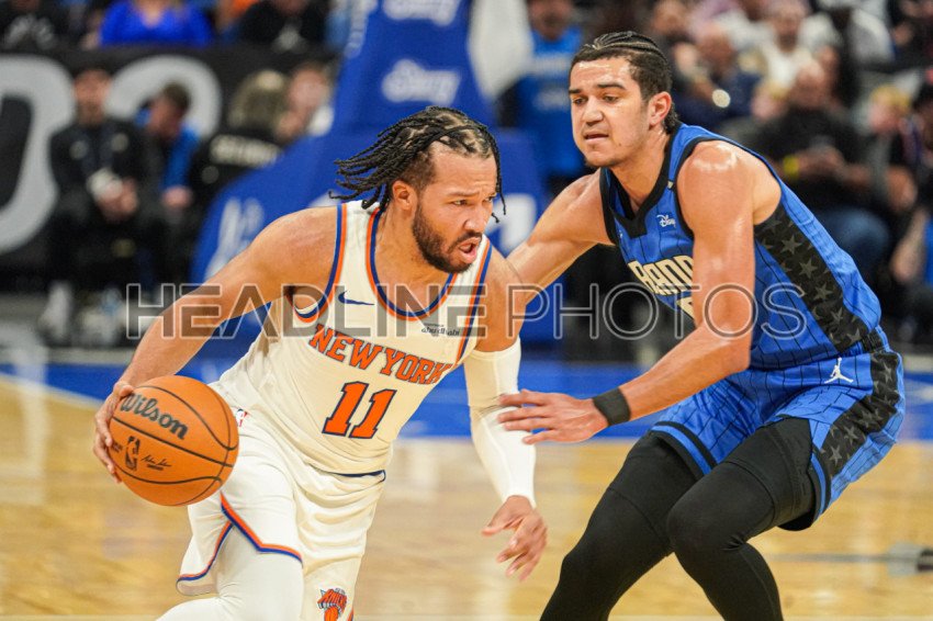 Orlando, Florida, USA, December 27, 2024, New York Knicks guard Jalen Brunson #11 runs pass Anthony Black #0 at the Kia Center. (Photo Credit: Marty Jean-Louis)