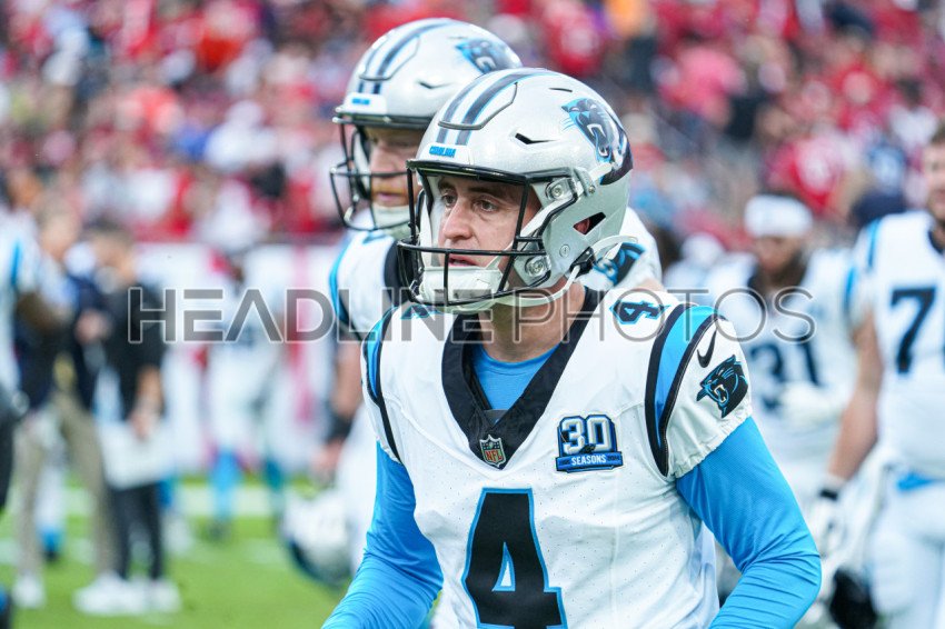Tampa Bay, Florida, USA, December 29, 2024, Carolina Panthers kicker Eddy Pineiro #4 at Raymond James Stadium. (Photo Credit: Marty Jean-Louis)