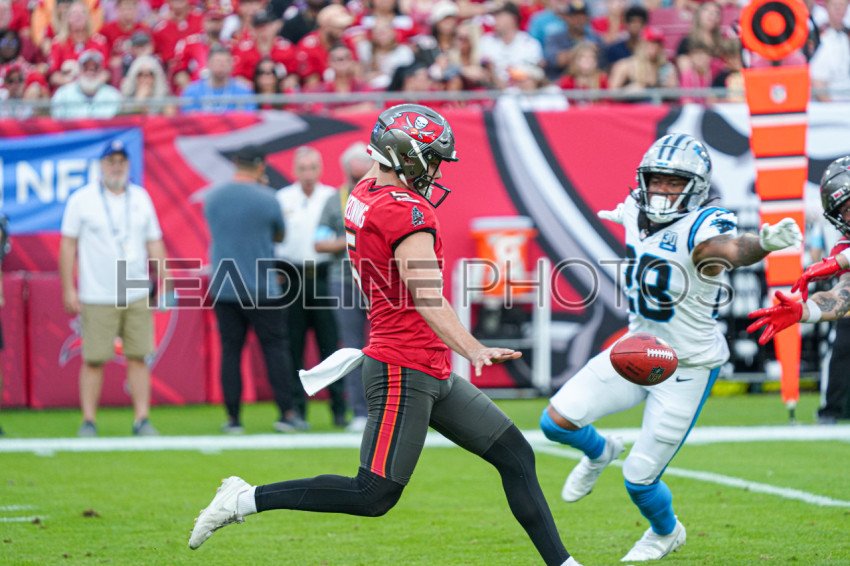 Tampa Bay, Florida, USA, December 29, 2024, Tampa Bay Buccaneers punter Jack Browning #5 makes a kick at Raymond James Stadium. (Photo Credit: Marty Jean-Louis)