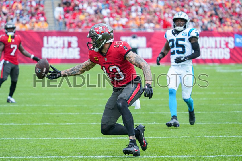 Tampa Bay, Florida, USA, December 29, 2024, Tampa Bay Buccaneers wide receiver Mike Evans #13 misses the ball at Raymond James Stadium. (Photo Credit: Marty Jean-Louis)