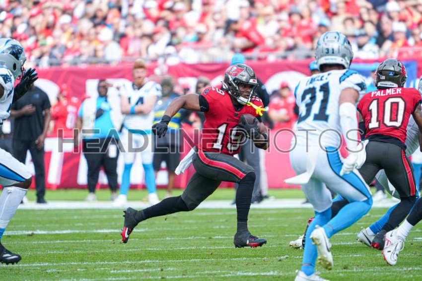 Tampa Bay, Florida, USA, December 29, 2024, Tampa Bay Buccaneers wide receiver Kameron Johnson #19 makes a run at Raymond James Stadium. (Photo Credit: Marty Jean-Louis)