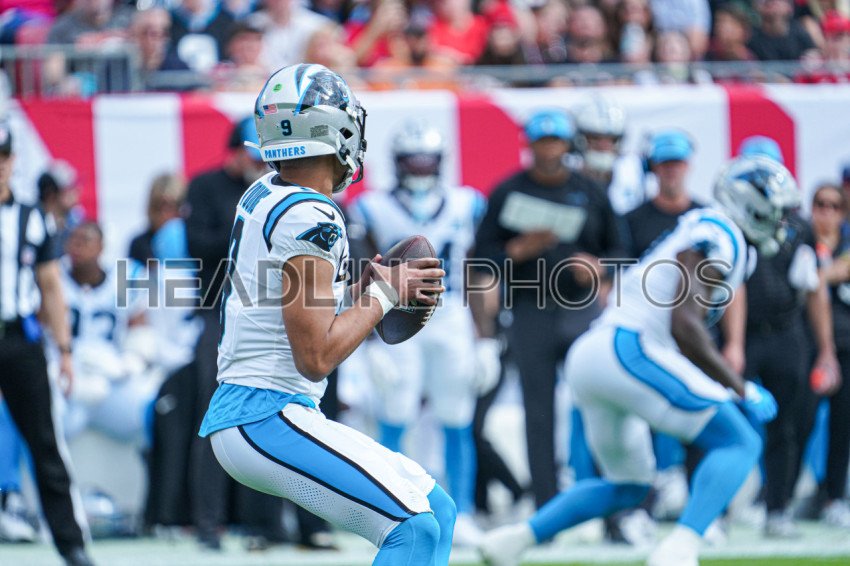 Tampa Bay, Florida, USA, December 29, 2024, Carolina Panthers quarterback Bryce Young #9 readies to make a pass at Raymond James Stadium. (Photo Credit: Marty Jean-Louis)