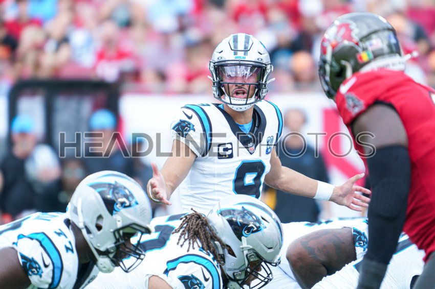 Tampa Bay, Florida, USA, December 29, 2024, Carolina Panthers quarterback Bryce Young #9 at Raymond James Stadium. (Photo Credit: Marty Jean-Louis)