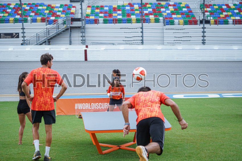 Daytona, Florida, USA, July 2, 2022, People playing Teqball during the SoccerFest at Daytona Speedway. (Photo Credit: Marty Jean-Louis)