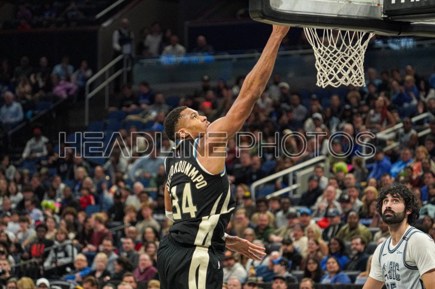 Orlando, Florida, USA, January 10, 2025, Milwaukee Bucks Forward Giannis Antetokounmpo #34 makes a basket at the Kia Center. (Photo Credit: Marty Jean-Louis)