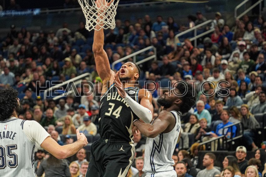Orlando, Florida, USA, January 10, 2025, Milwaukee Bucks Forward Giannis Antetokounmpo #34 makes a basket at the Kia Center. (Photo Credit: Marty Jean-Louis)