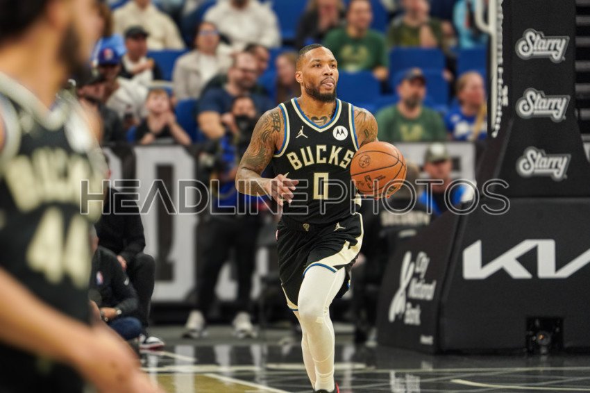 Orlando, Florida, USA, January 10, 2025, Milwaukee Bucks guard Damian Lillard #0 runs forward at the Kia Center. (Photo Credit: Marty Jean-Louis)