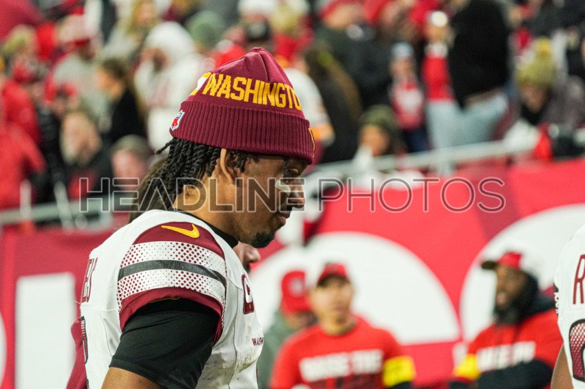 Tampa Bay, Florida, USA, January 12, 2025, Washington Commanders quarterback Jayden Daniels at Raymond James Stadium. (Photo Credit: Marty Jean-Louis)