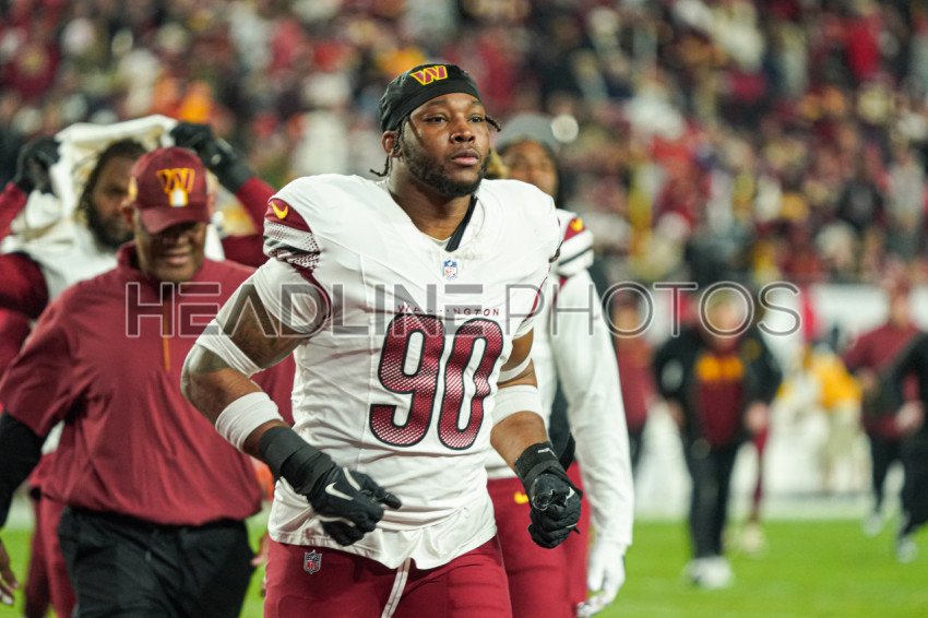 Tampa Bay, Florida, USA, January 12, 2025, Washington Commanders player Javontae Jean-Baptiste #90 at Raymond James Stadium. (Photo Credit: Marty Jean-Louis)