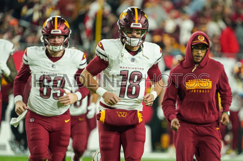 Tampa Bay, Florida, USA, January 12, 2025, Washington Commanders players Tyler Ott and Marcus Mariota #18 at Raymond James Stadium. (Photo Credit: Marty Jean-Louis)