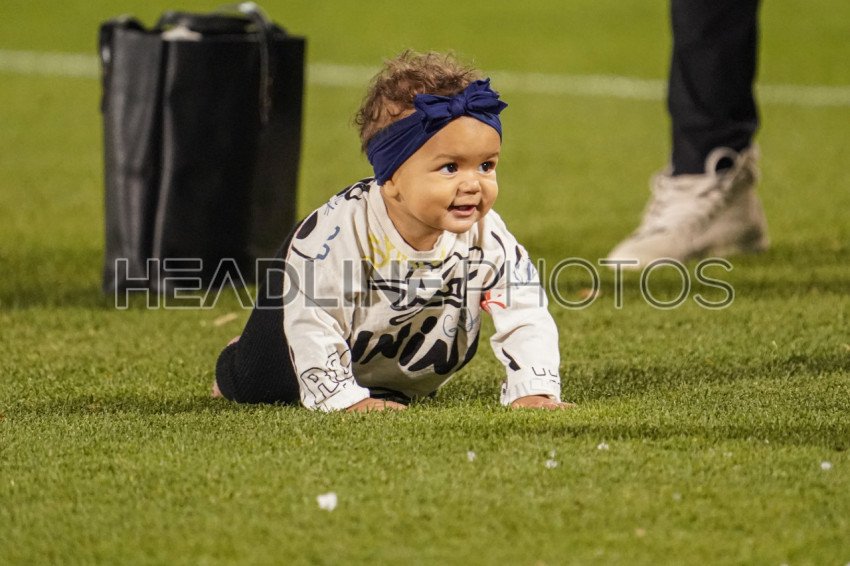 Denver, Colorado, USA, November 7, 2021, A baby crawls at Dick’s Sporting Goods Park (Photo Credit: Marty Jean-Louis)