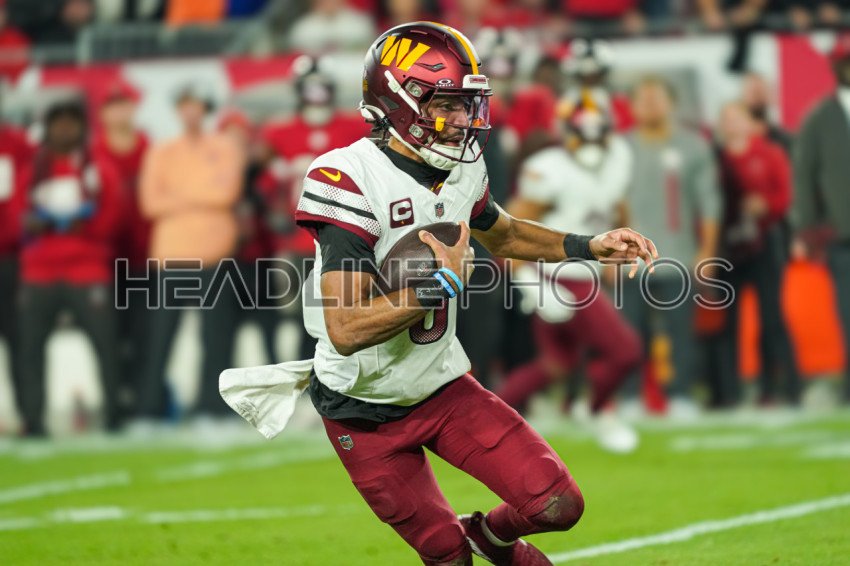 Tampa Bay, Florida, USA, January 12, 2025, Washington Commanders quarterback Jayden Daniels on the run at Raymond James Stadium. (Photo Credit: Marty Jean-Louis)