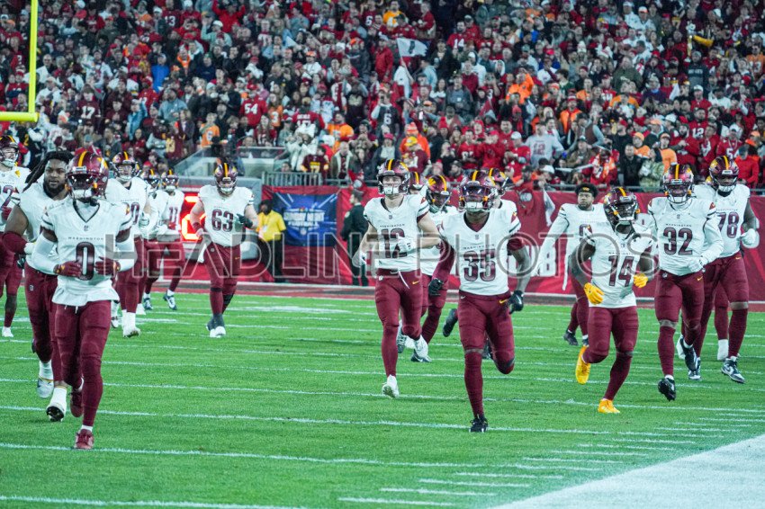 Tampa Bay, Florida, USA, January 12, 2025, Washington Commanders players entering the field at Raymond James Stadium. (Photo Credit: Marty Jean-Louis)