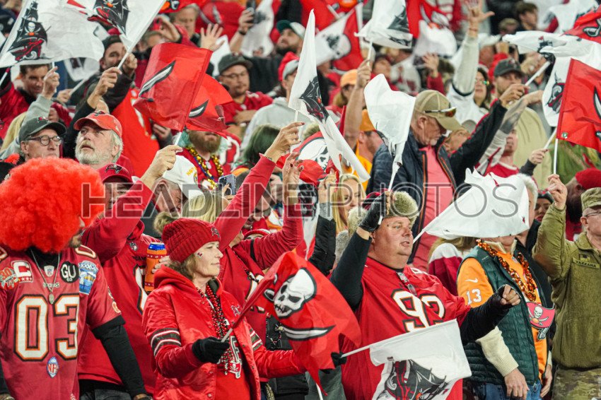 Tampa Bay, Florida, USA, January 12, 2025, Tampa Bay Buccaneers fans raising their flags at Raymond James Stadium. (Photo Credit: Marty Jean-Louis)