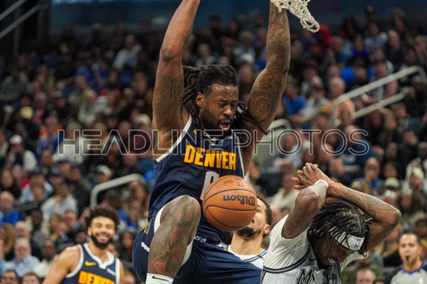 Orlando, Florida, USA, January 19, 2025, Denver Nuggets center DeAndre Jordan #6 makes a dunk in the first half at the Kia Center. (Photo Credit: Marty Jean-Louis)