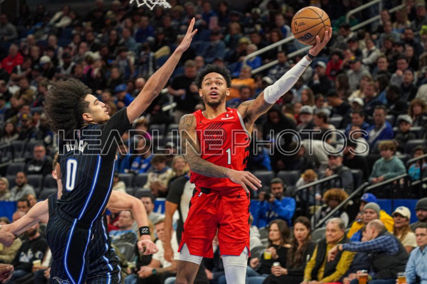 Orlando, Florida, USA, January 23, 2025, Portland Trail Blazers guard Anfernee Simons #1 attempt to make a basket at the Kia Center. (Photo Credit: Marty Jean-Louis)