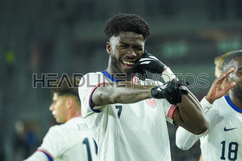 Orlando, Florida, January 22, 2025, USA forward Patrick Agyemang #7 celebrate after scoring a Friendly Match at Exploria Stadium. (Photo Credit: Marty Jean-Louis)